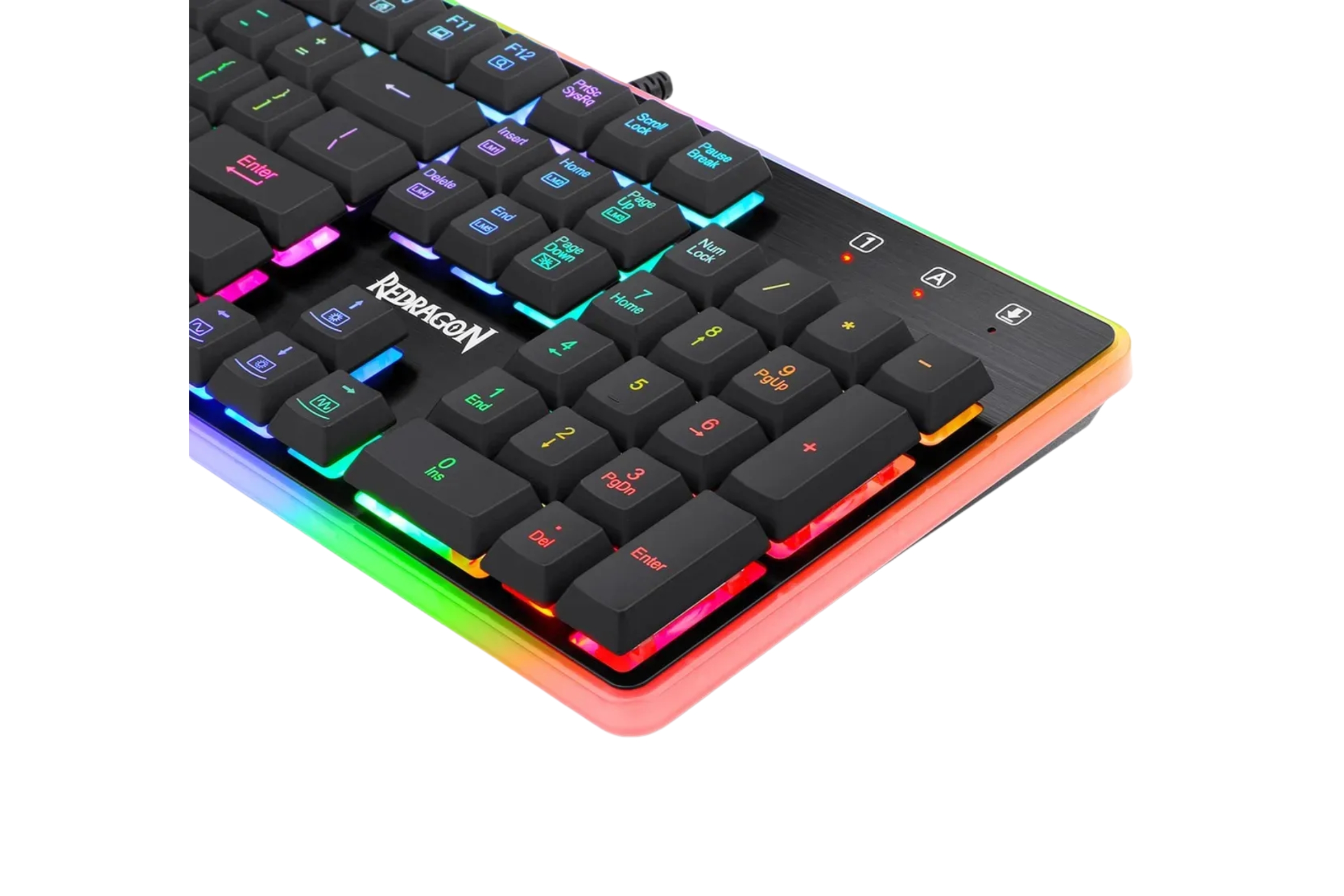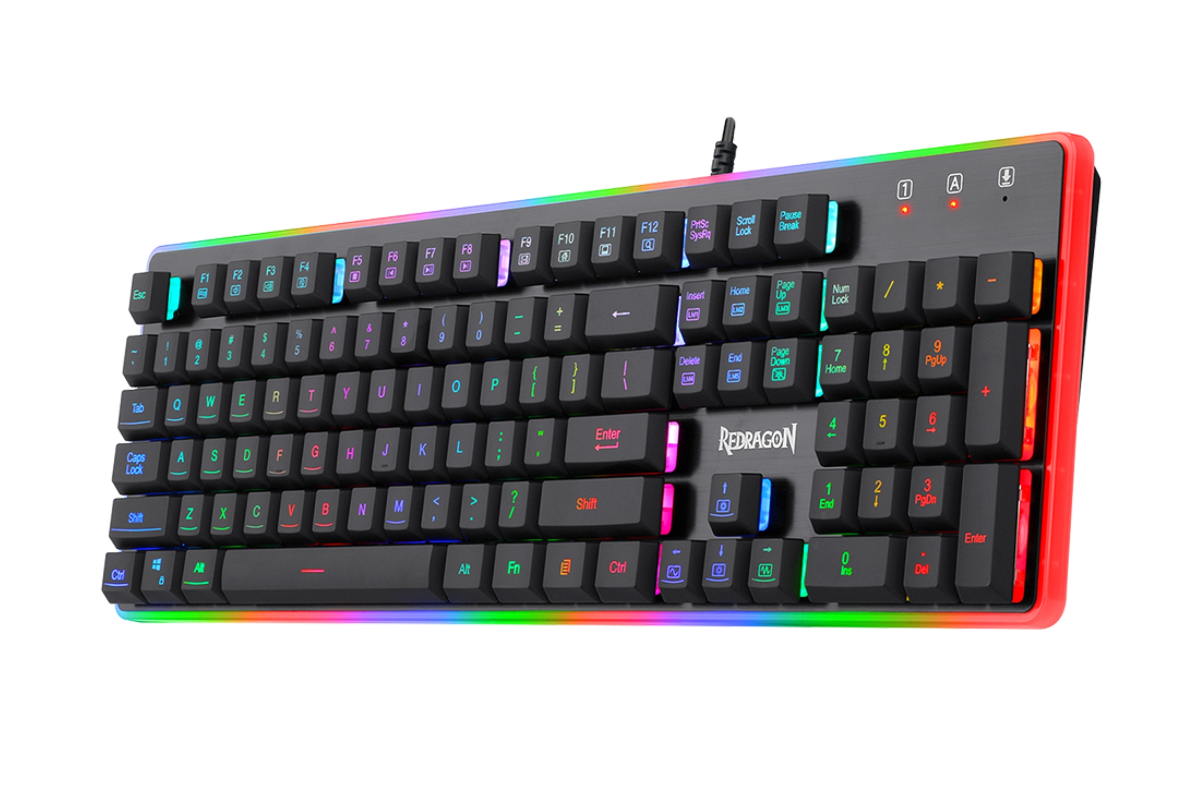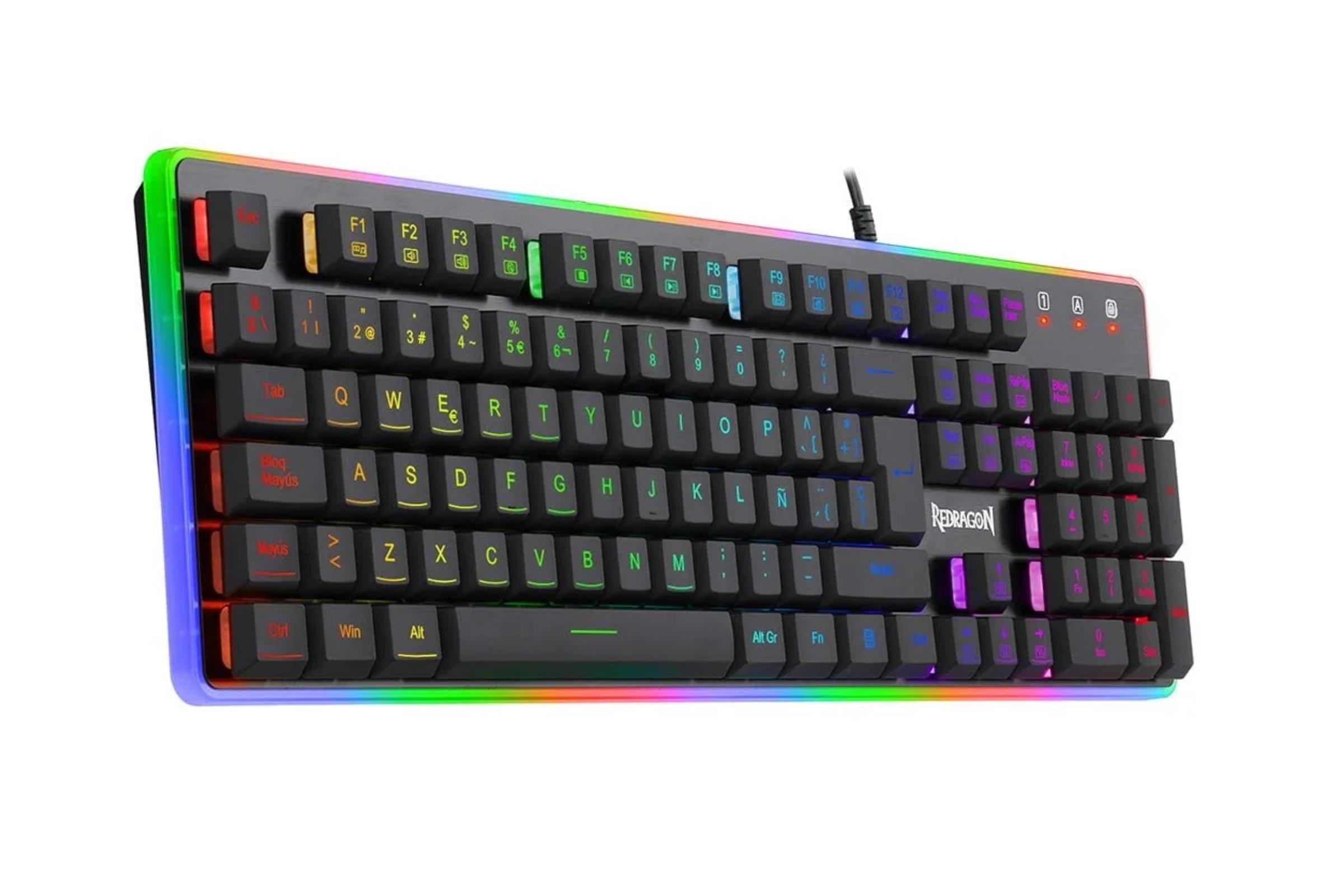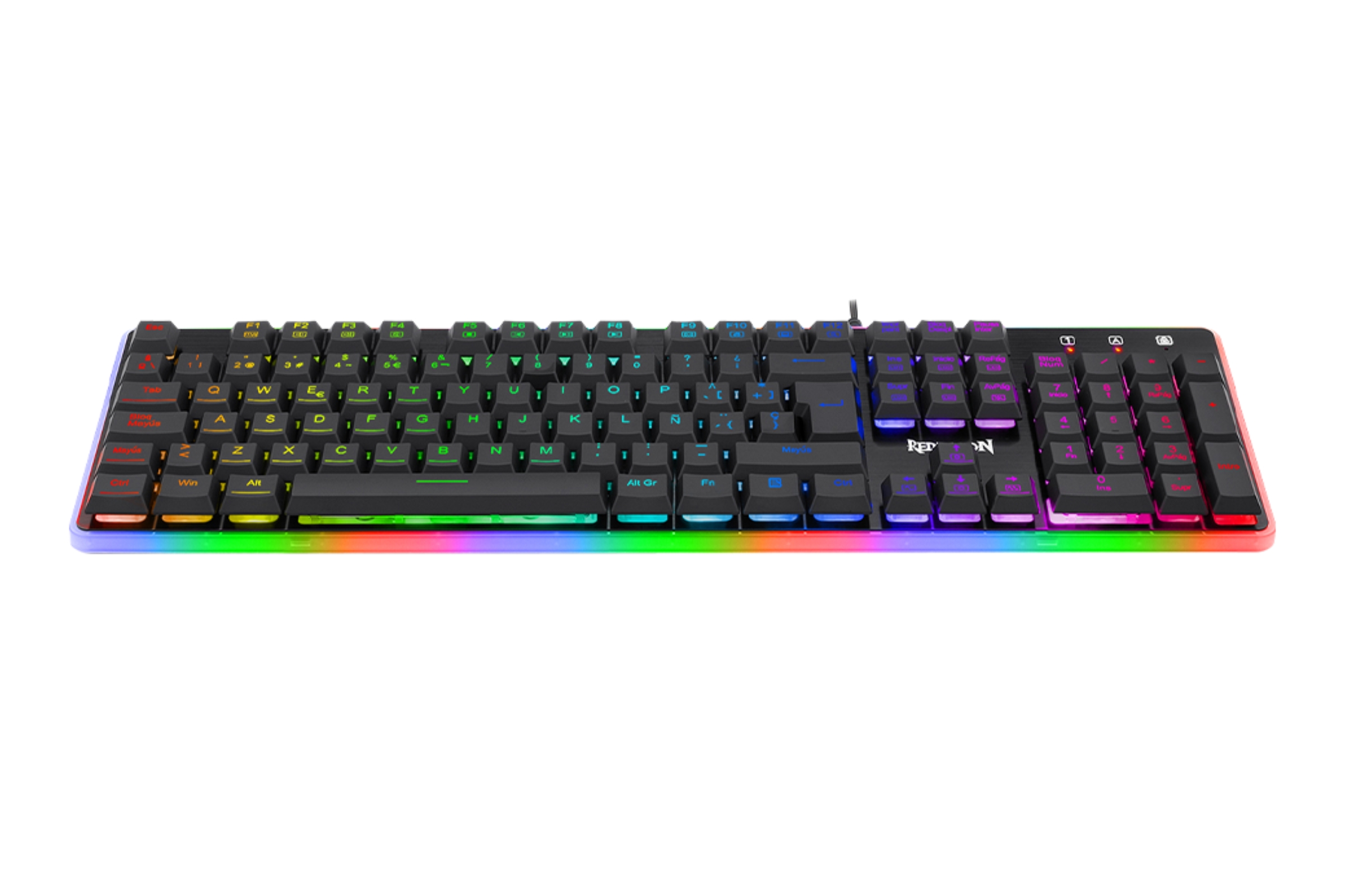 El Redragon Dyaus Black (K509) es un teclado Full Size (tamaño completo) diseñado para gamers que buscan durabilidad, rendimiento anti-ghosting y una iluminación vibrante sin el ruido de un teclado mecánico tradicional.
