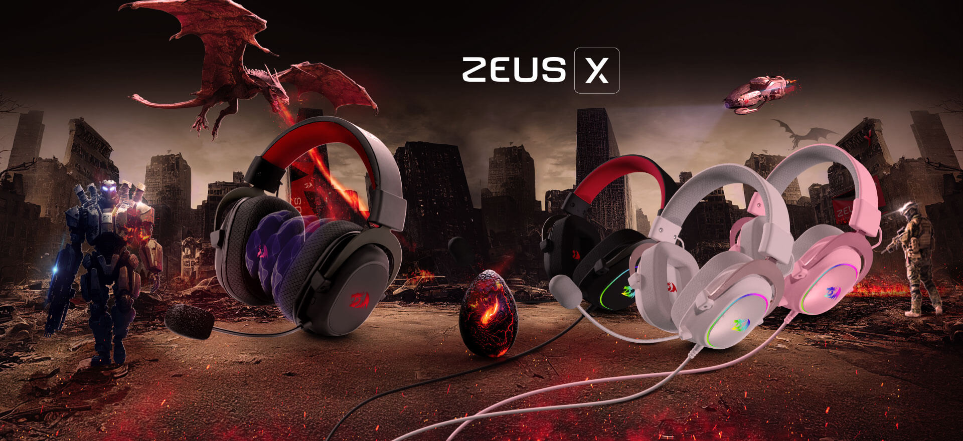 Potentes, hermosos, totales. Con retroiluminación RGB, un micrófono excepcional, construcción cómoda y robusta, y lo más importante una calidad de sonido arrolladora, los aclamados Zeus vuelven con más: Versión cableada: USB con controlador integrado.