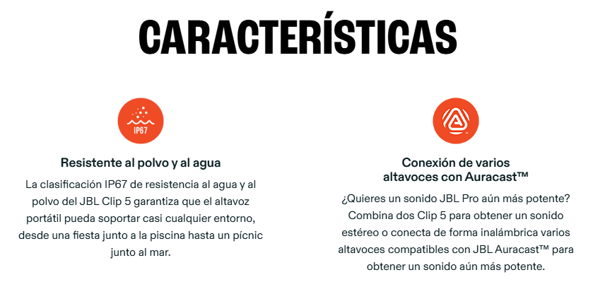No dejes que su pequeño tamaño te engañe. El JBL Clip 5 brinda una excelente experiencia musical, ofreciendo un gran sonido JBL Pro con graves impactantes. Tus amigos no se van a creer que un sonido tan potente pueda salir de un altavoz JBL Pro tan pequeño.