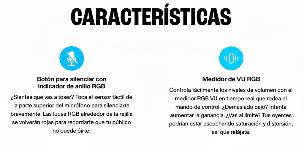 No te preocupes por intentar hablar siempre al mismo volumen: el compresor de rango dinámico evita que tu voz se corte si hablas demasiado alto, o sube el volumen si hablas demasiado bajo.