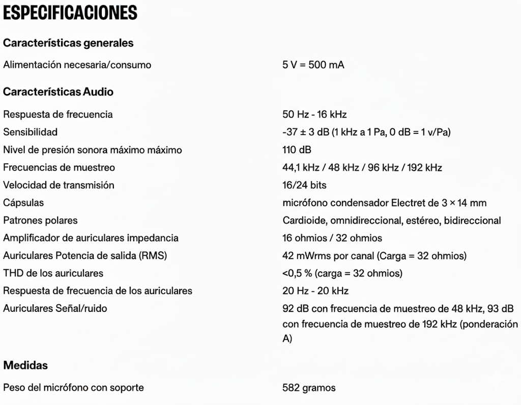 Transmite o graba una, dos o más voces a través de tres micrófonos de condensador cardioide de 14 mm, ligeros, rápidos y sensibles (-37 dB), todos ellos con un rango de frecuencias amplio y plano (50Hz - 16kHz). Con una grabación de 192 kHz/24 bits, tus transmisiones y grabaciones sonarán con calidad de estudio y captarán cada matiz de lo que dices.