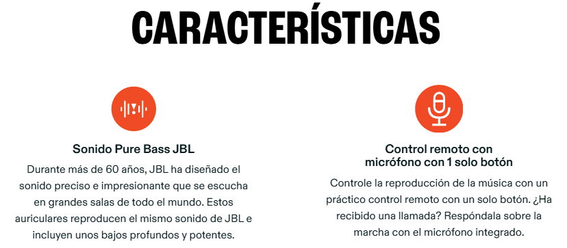 Le presentamos los auriculares intraaurales JBL TUNE110. Son ligeros, cómodos y compactos. Dentro de la carcasa de auricular duradera, un par de unidades de 9 mm ofrecen bajos notables y reproducen el sonido Pure Bass de JBL que ha experimentado en salas de conciertos, pabellones y estudios de grabación de todo el mundo. Además, el control remoto con un solo botón y el cable plano sin enredos le permiten controlar la reproducción de la música y responder a llamadas sobre la marcha con un micrófono integrado. Todo ello hace que los JBL TUNE110 sean su compañero diario en el trabajo, en el hogar y de un lado a otro.