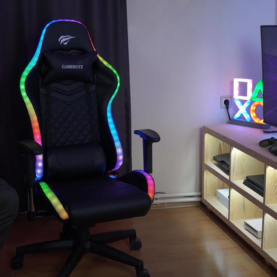 Su diseño ergonómico con respaldo reclinable, apoyabrazos ajustables y pistón de altura regulable garantiza una postura cómoda en todo momento. Además, incorpora iluminación LED RGB para darle un toque gamer único a tu setup. Estructura sólida y materiales de calidad para mayor durabilidad. Ergonomía avanzada que cuida tu postura y reduce la fatiga.