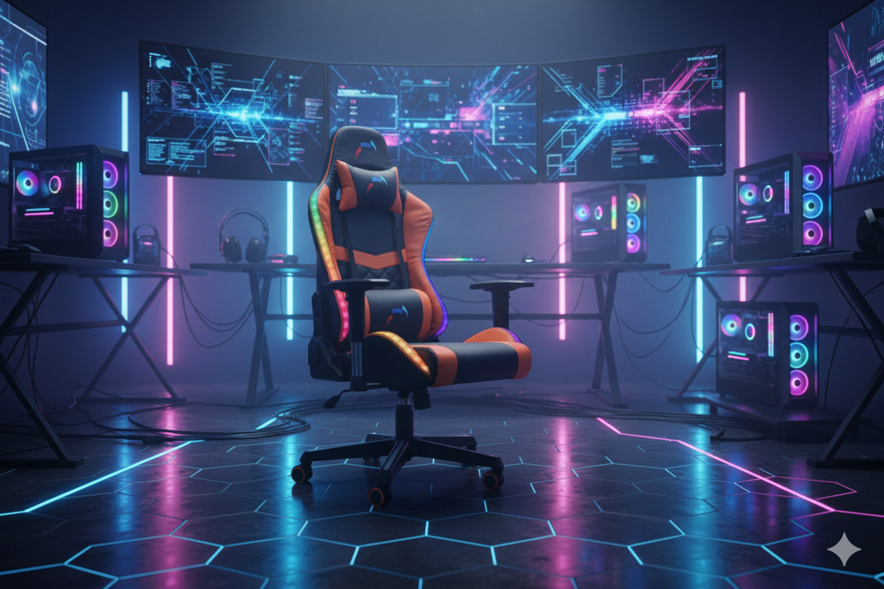 • Luces RGB en el borde de la silla, modos de iluminación fija y aleatoria