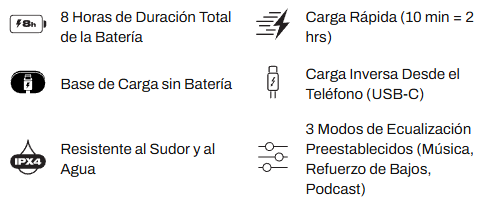 • Tipo de auricular: Verdaderos auriculares inalámbricos intrauditivos