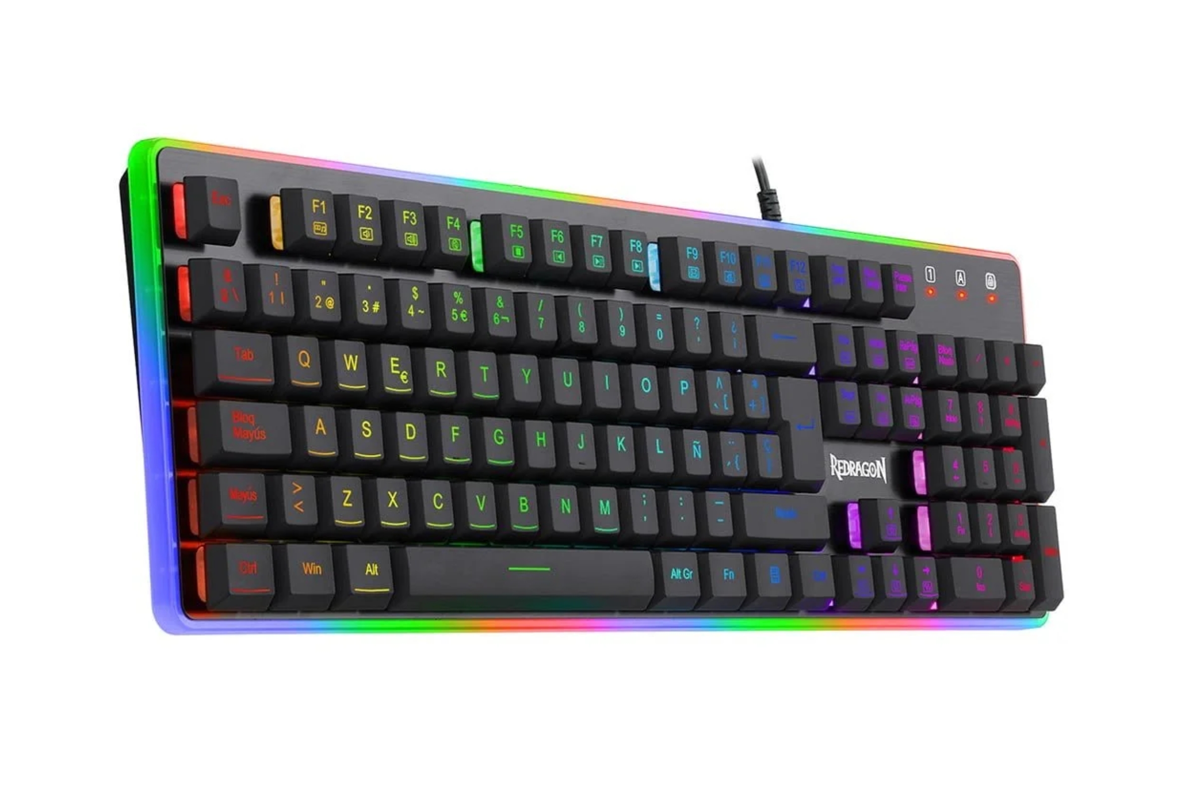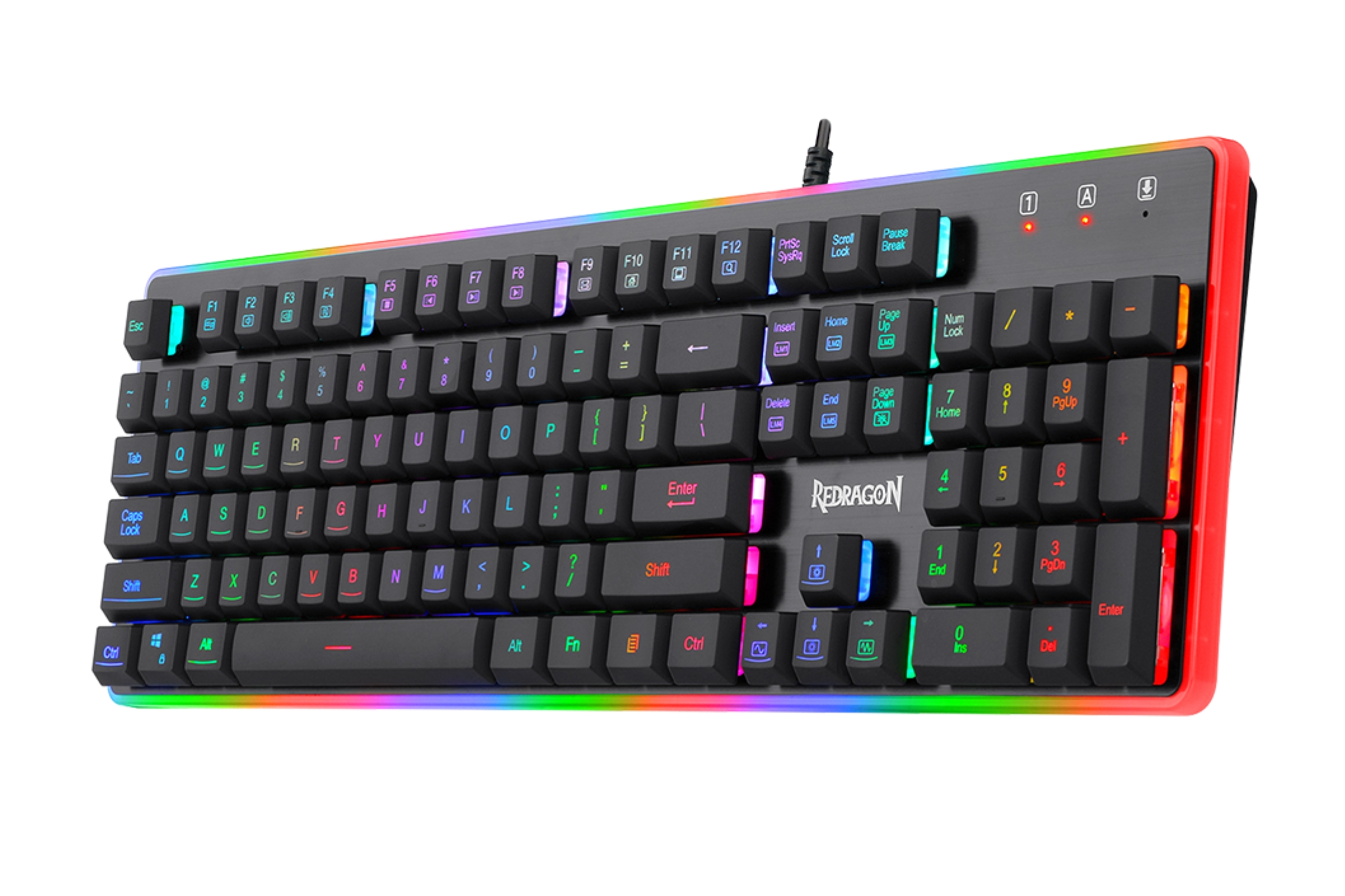 K509 Redragon RGB LED Keyboard Teclado iluminado en 7 colores diferentes (azul, verde, rojo, cian, amarillo, morado, blanco, apagado) 4 niveles de brillo de retroiluminación y velocidad de respiración ajustable, la iluminación se puede apagar por completo. La retroiluminación ambiental única del borde del teclado que rodea todo el teclado cambia de color en sincronía con toda la retroiluminación de las teclas.