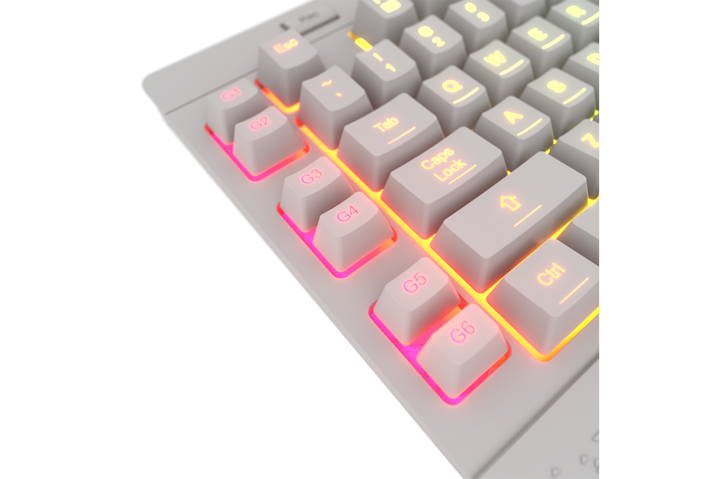Las 6 teclas macro dedicadas para acción al vuelo son configurables directamente desde el teclado, sin necesidad de recurrir al software. Tanto en un juego como en un programa de edición, por caso, los macros pueden simplificarte la vida.